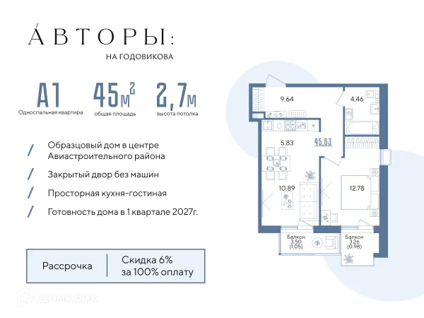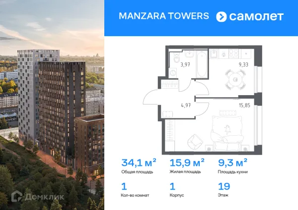 1 комн. квартира в Казане в ипотеку от 76 995 руб/месяц