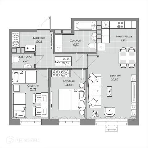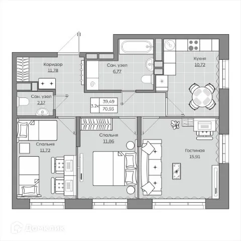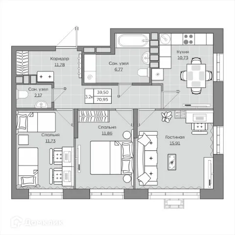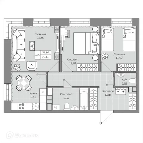 3 комн. квартира в Казане в ипотеку от 118 103 руб/месяц
