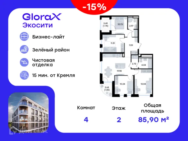 4 комн. квартира в Казане в ипотеку от 237 109 руб/месяц