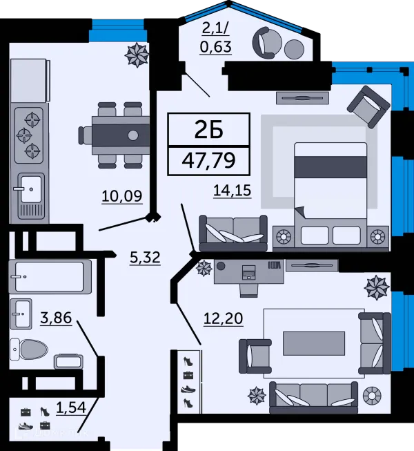 2 комн. квартира в Ростове-на-Дону в ипотеку от 44 737 руб/месяц