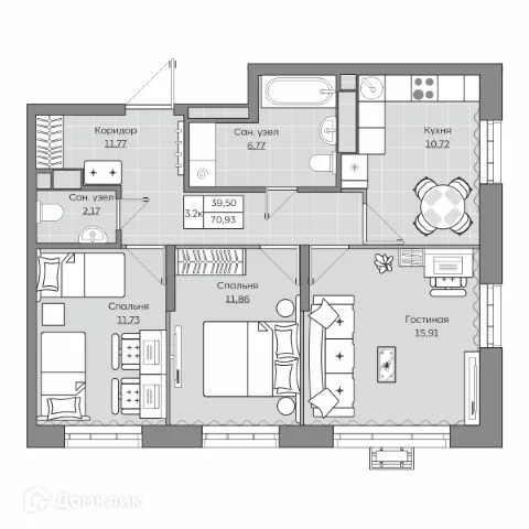 3 комн. квартира в Казане в ипотеку от 118 103 руб/месяц