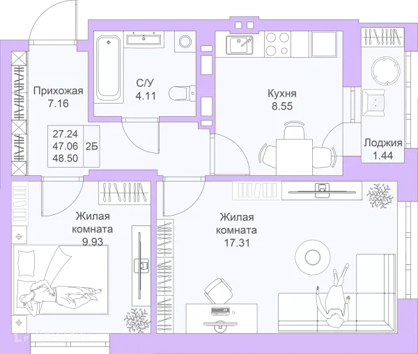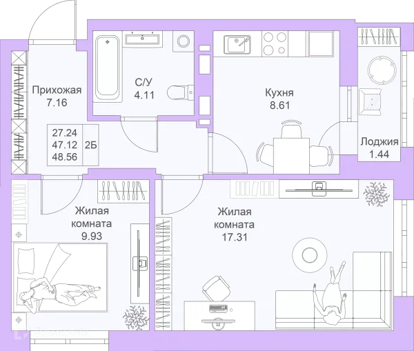 2 комн. квартира в Казане в ипотеку от 76 580 руб/месяц