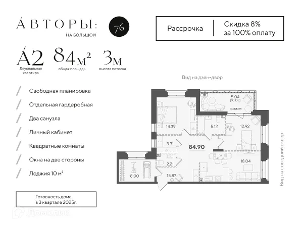 3 комн. квартира в Казане в ипотеку от 302 917 руб/месяц