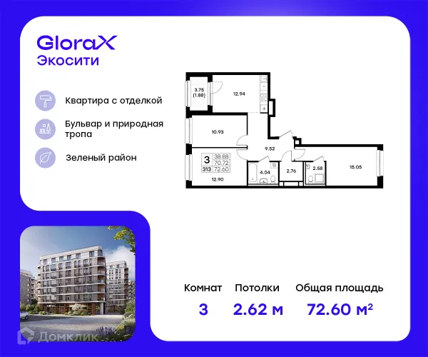 3 комн. квартира в Казане в ипотеку от 96 579 руб/месяц
