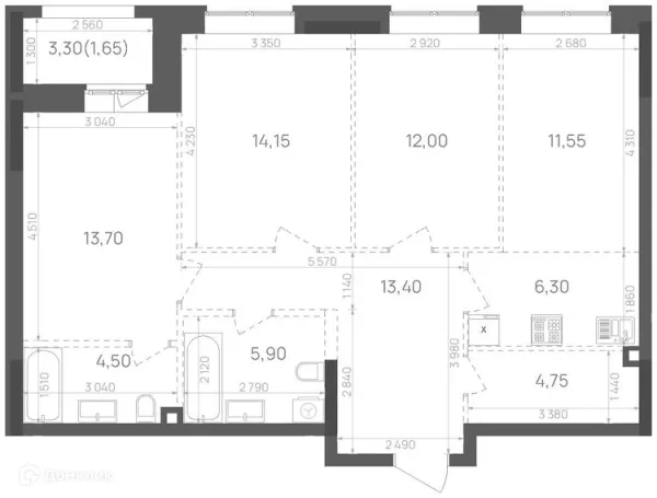 3 комн. квартира в Казане в ипотеку от 91 495 руб/месяц
