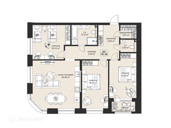 3 комн. квартира в Казане в ипотеку от 106 574 руб/месяц