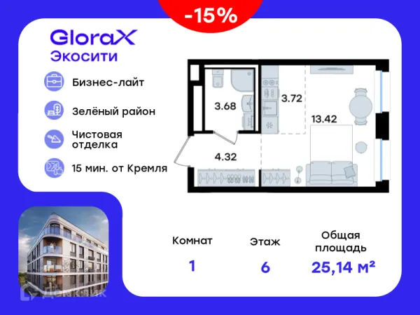 Студия квартира в Казане в ипотеку от 58 201 руб/месяц
