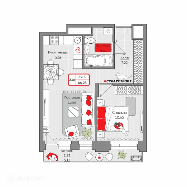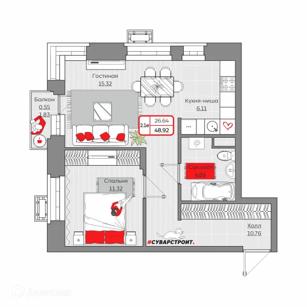 2 комн. квартира в Казане в ипотеку от 63 599 руб/месяц