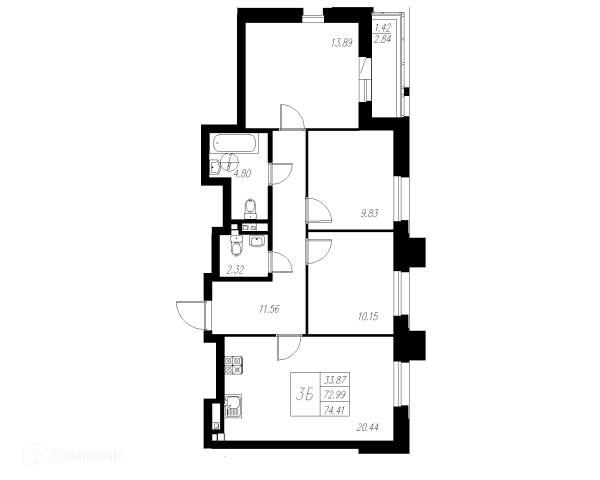 3 комн. квартира в Казане в ипотеку от 94 405 руб/месяц