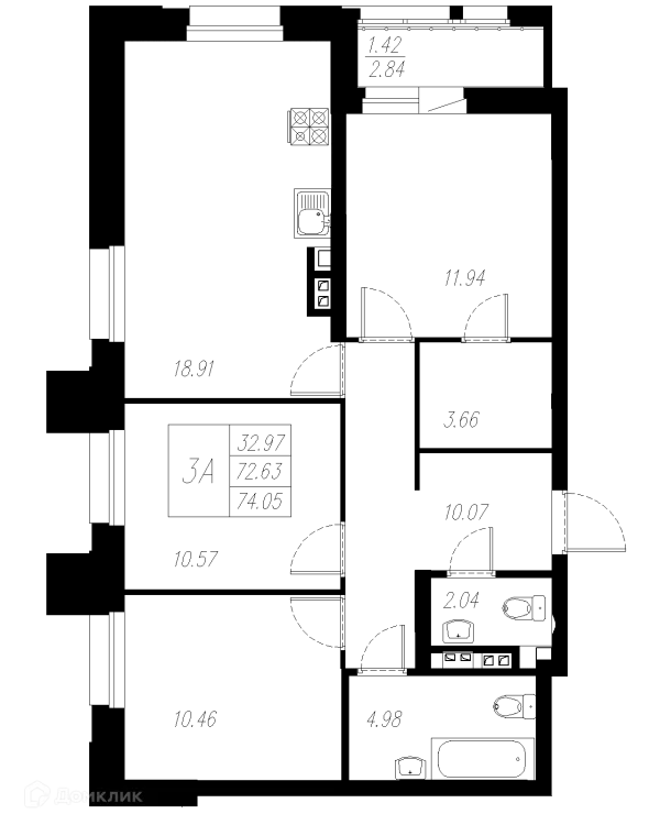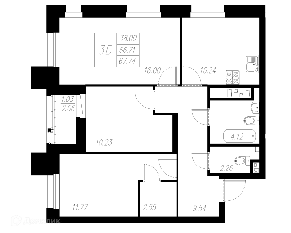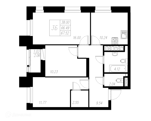 3 комн. квартира в Казане в ипотеку от 97 652 руб/месяц