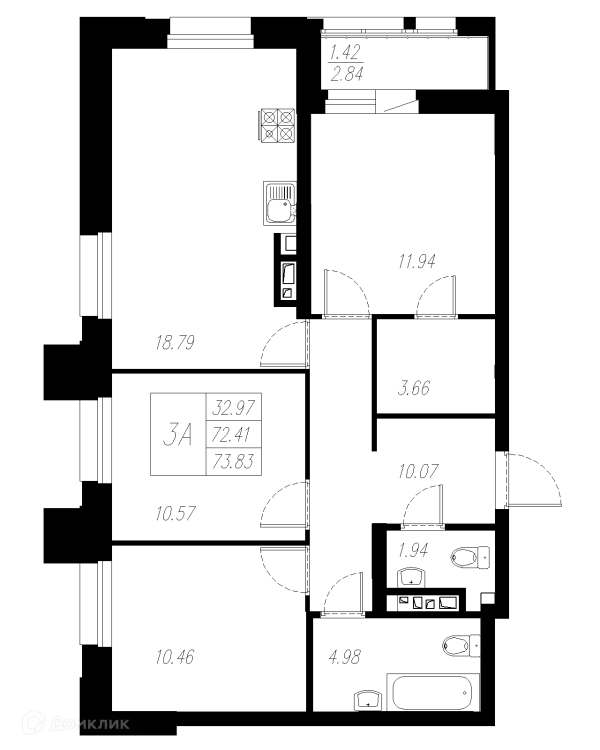 3 комн. квартира в Казане в ипотеку от 94 765 руб/месяц