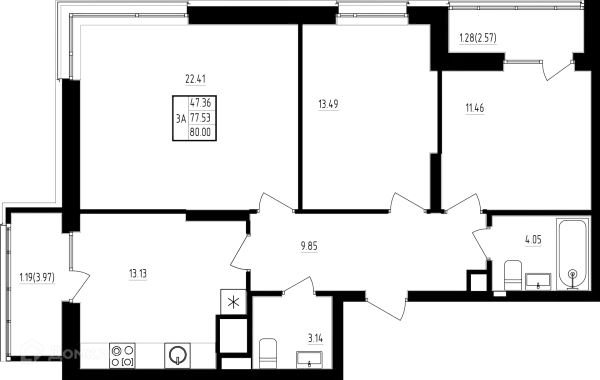 3 комн. квартира в Казане в ипотеку от 97 804 руб/месяц