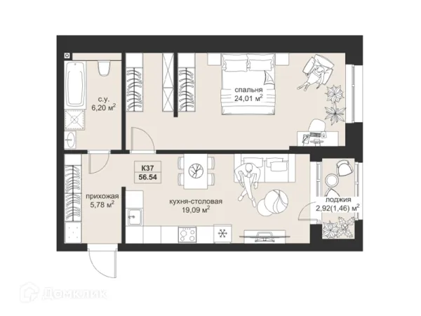 2 комн. квартира в Казане в ипотеку от 192 963 руб/месяц