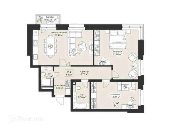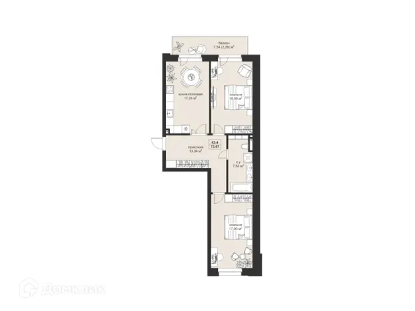 2 комн. квартира в Казане в ипотеку от 198 406 руб/месяц