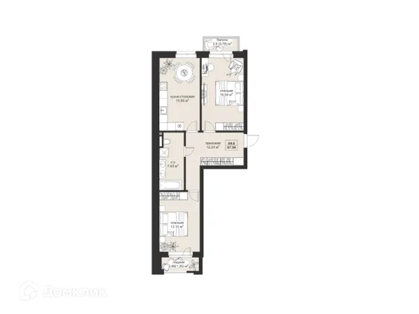 2 комн. квартира в Казане в ипотеку от 203 281 руб/месяц
