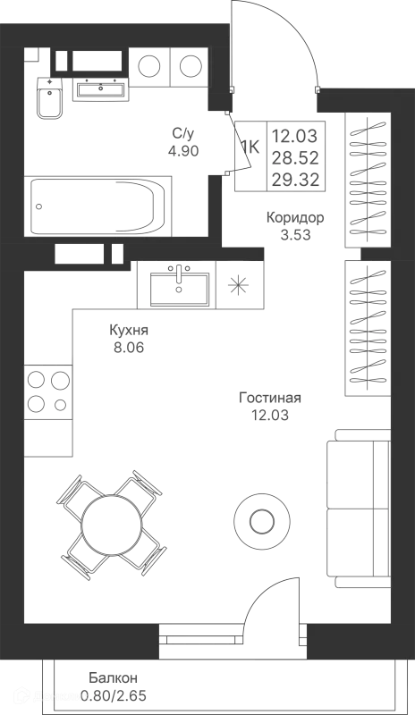 Студия квартира в Казане в ипотеку от 66 810 руб/месяц