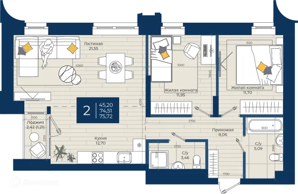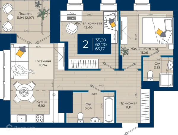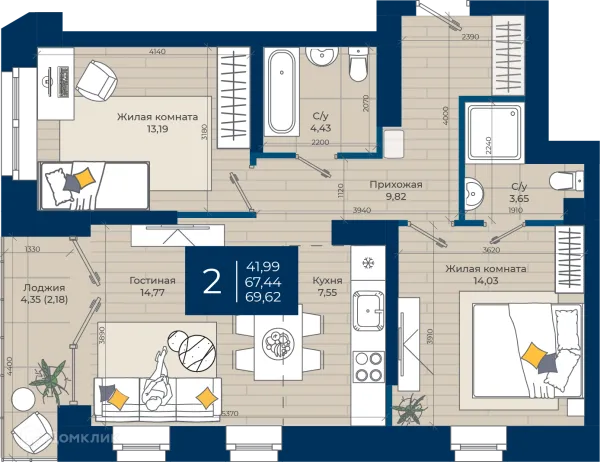 2 комн. квартира в Казане в ипотеку от 159 919 руб/месяц