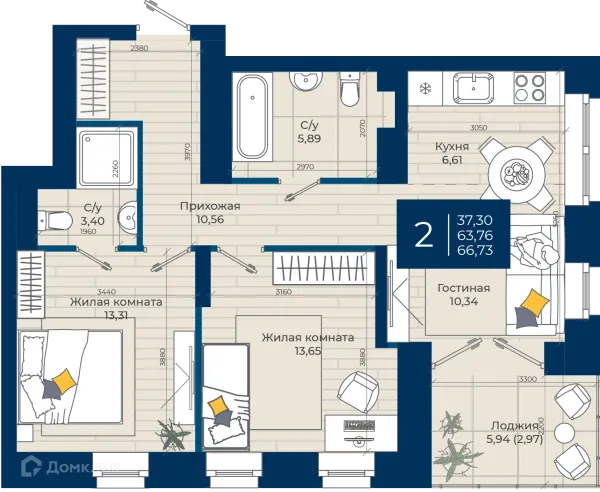2 комн. квартира в Казане в ипотеку от 153 491 руб/месяц