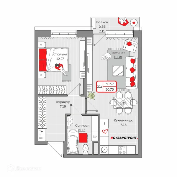 2 комн. квартира в Казане в ипотеку от 75 689 руб/месяц