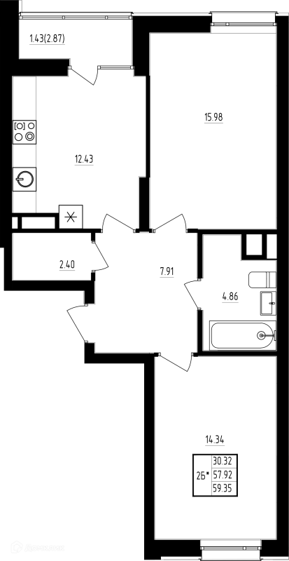 2 комн. квартира в Казане в ипотеку от 91 884 руб/месяц