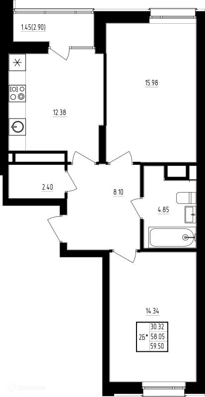 2 комн. квартира в Казане в ипотеку от 145 276 руб/месяц