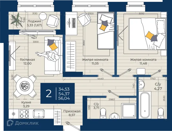 2 комн. квартира в Казане в ипотеку от 159 919 руб/месяц