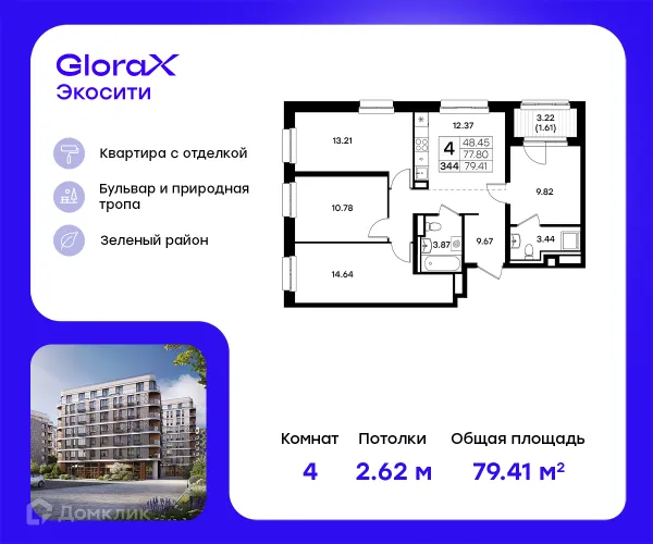 4 комн. квартира в Казане в ипотеку от 347 621 руб/месяц