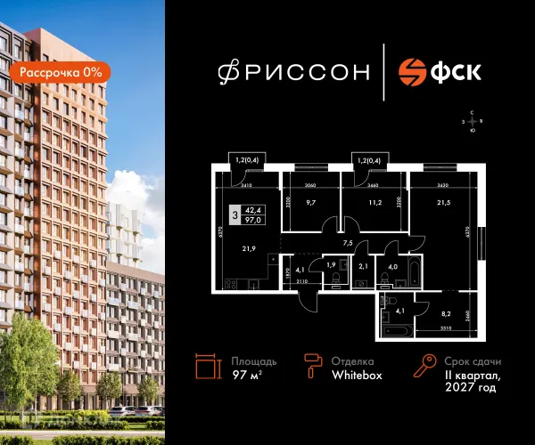 4 комн. квартира в Казане в ипотеку от 151 994 руб/месяц