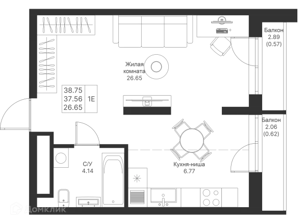 1 комн. квартира в Казане в ипотеку от 62 612 руб/месяц