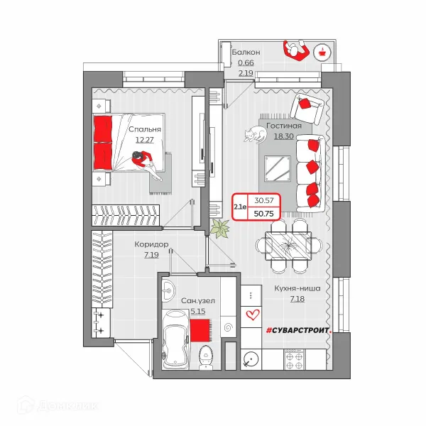 2 комн. квартира в Казане в ипотеку от 75 524 руб/месяц