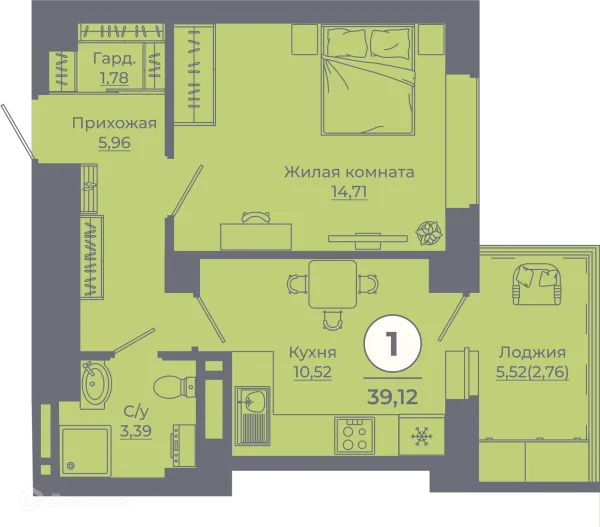 1 комн. квартира в Ростове-на-Дону в ипотеку от 40 114 руб/месяц