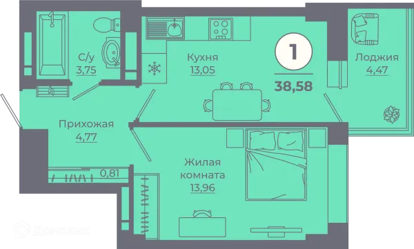 1 комн. квартира в Ростове-на-Дону в ипотеку от 42 613 руб/месяц
