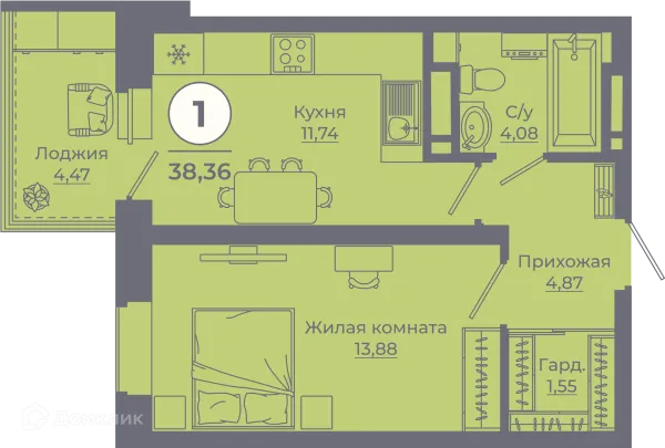 1 комн. квартира в Ростове-на-Дону в ипотеку от 38 853 руб/месяц