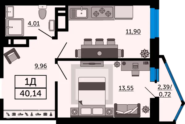 1 комн. квартира в Ростове-на-Дону в ипотеку от 40 466 руб/месяц