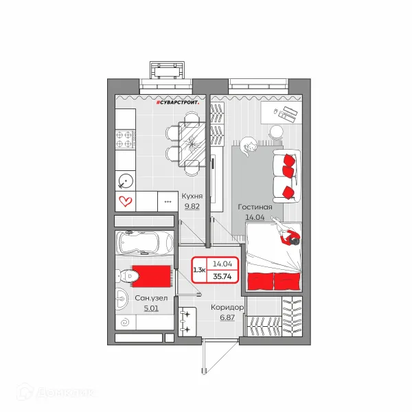 1 комн. квартира в Казане в ипотеку от 56 283 руб/месяц