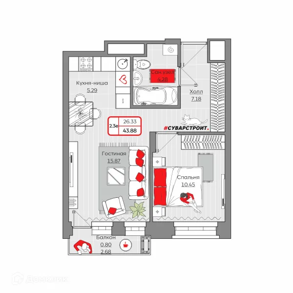 2 комн. квартира в Казане в ипотеку от 64 009 руб/месяц