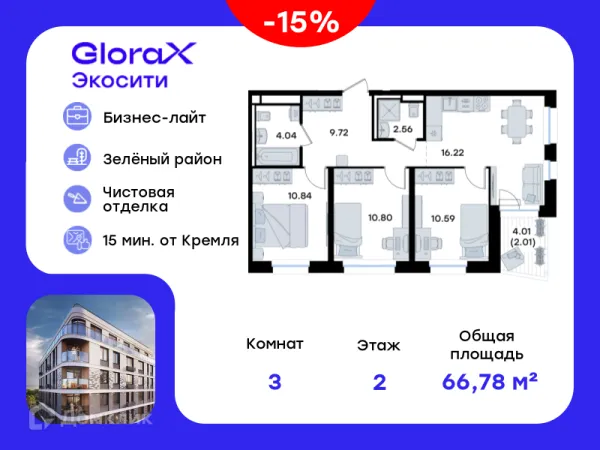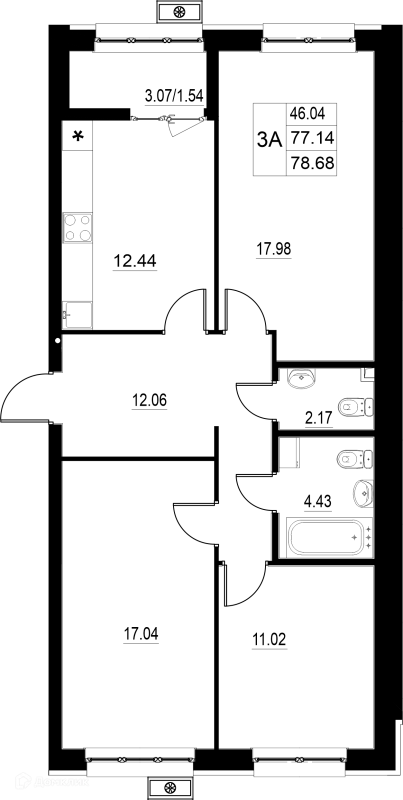 3 комн. квартира в Казане в ипотеку от 78 577 руб/месяц