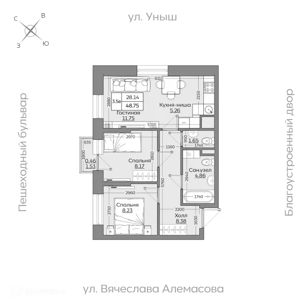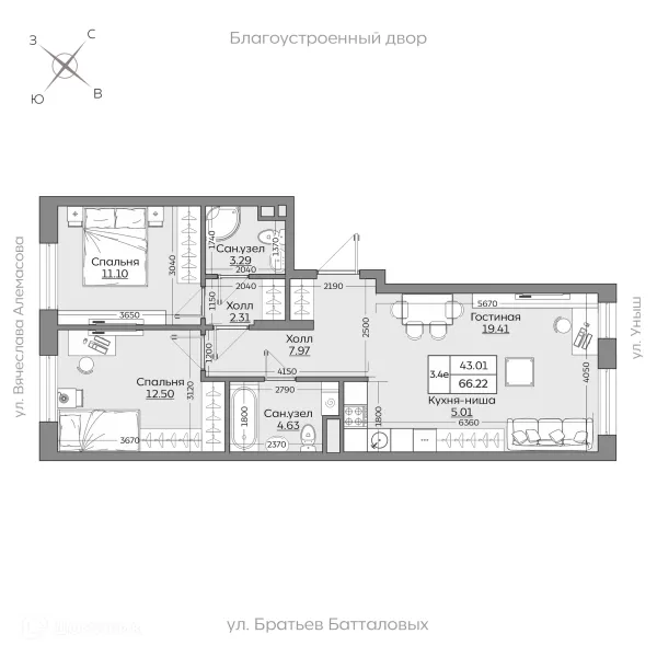 3 комн. квартира в Казане в ипотеку от 100 094 руб/месяц