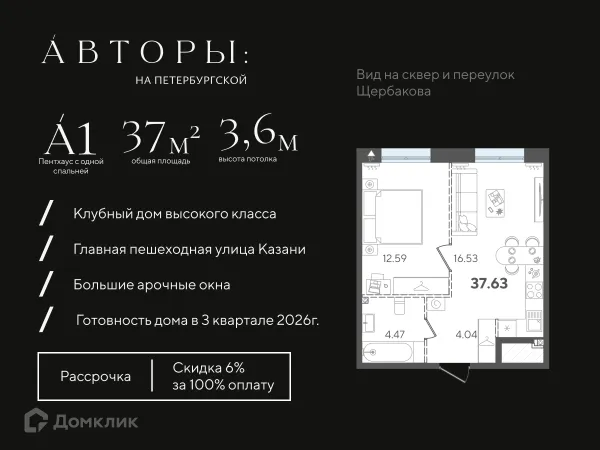 1 комн. квартира в Казане в ипотеку от 76 582 руб/месяц
