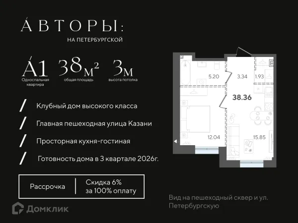 1 комн. квартира в Казане в ипотеку от 85 797 руб/месяц
