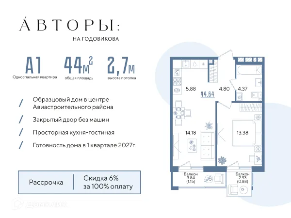 1 комн. квартира в Казане в ипотеку от 75 447 руб/месяц