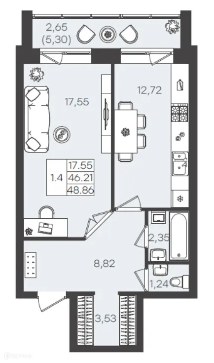 1 комн. квартира в Казане в ипотеку от 46 242 руб/месяц