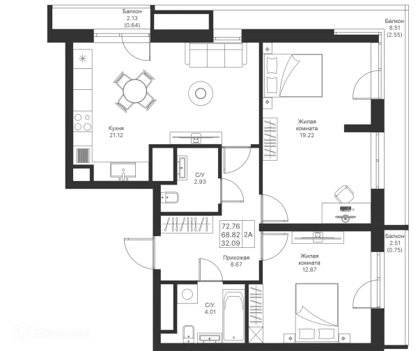 2 комн. квартира в Казане в ипотеку от 104 879 руб/месяц