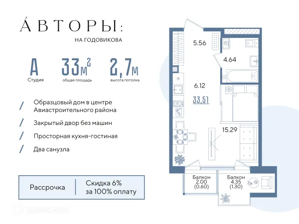Студия квартира в Казане в ипотеку от 73 264 руб/месяц