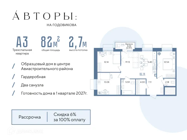 3 комн. квартира в Казане в ипотеку от 99 730 руб/месяц